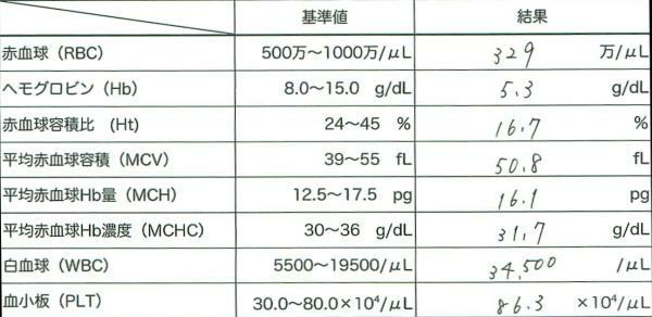 しかし先日の血液検査結果によると、これまで以上に貧血が進んだとの事。