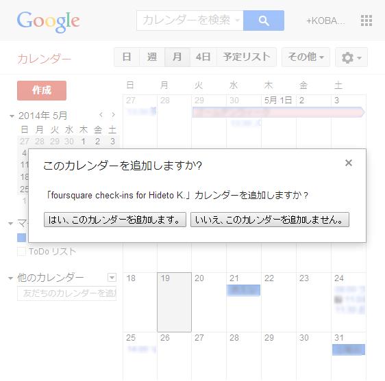 Googleカレンダーのサイトで「このカレンダーを追加しますか?」と確認されるので、「はい、このカレンダーを追加します。」を選択します。