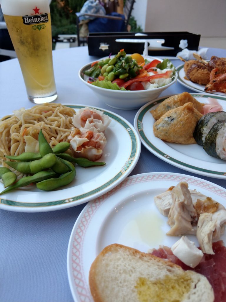ビアガーデン会場の様子。明るくライトアップされている環境とは言え、スマホでサッと撮る写真とは思えないクオリティ。