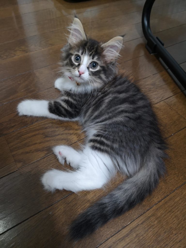 子猫のサリーちゃんに癒される2019.8.13ネコ,写真日記 知人が子猫を飼い始めたとのことで早速見学に行く。 女の子のサリーちゃん。大変に美人さんである。 大変に元気でたっぷり遊んでも「まだ遊んで!」とじゃれてくる。可愛いなぁ。 小さいうちにまた遊びに行きたいな。