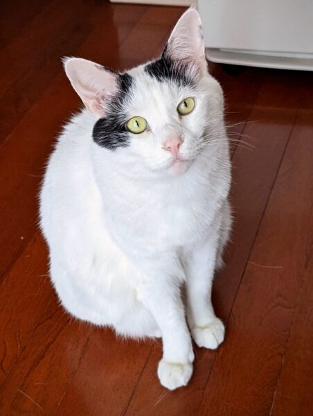 かわいい顔で朝ご飯のお代わりをおねだりするサスケ君。