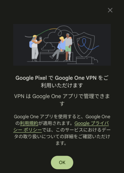愛機Pixel 7で利用特典のGoogle One VPNが利用できるようになった。通信経路が保護されるのでフリーWi-Fiなどを使うときの安全性が高まります☺