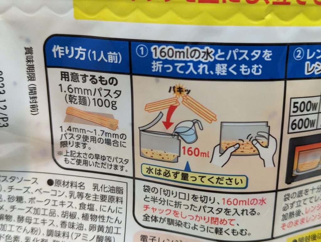 今回試してみたのはカルボナーラ。近所のスーパーで300円でした。