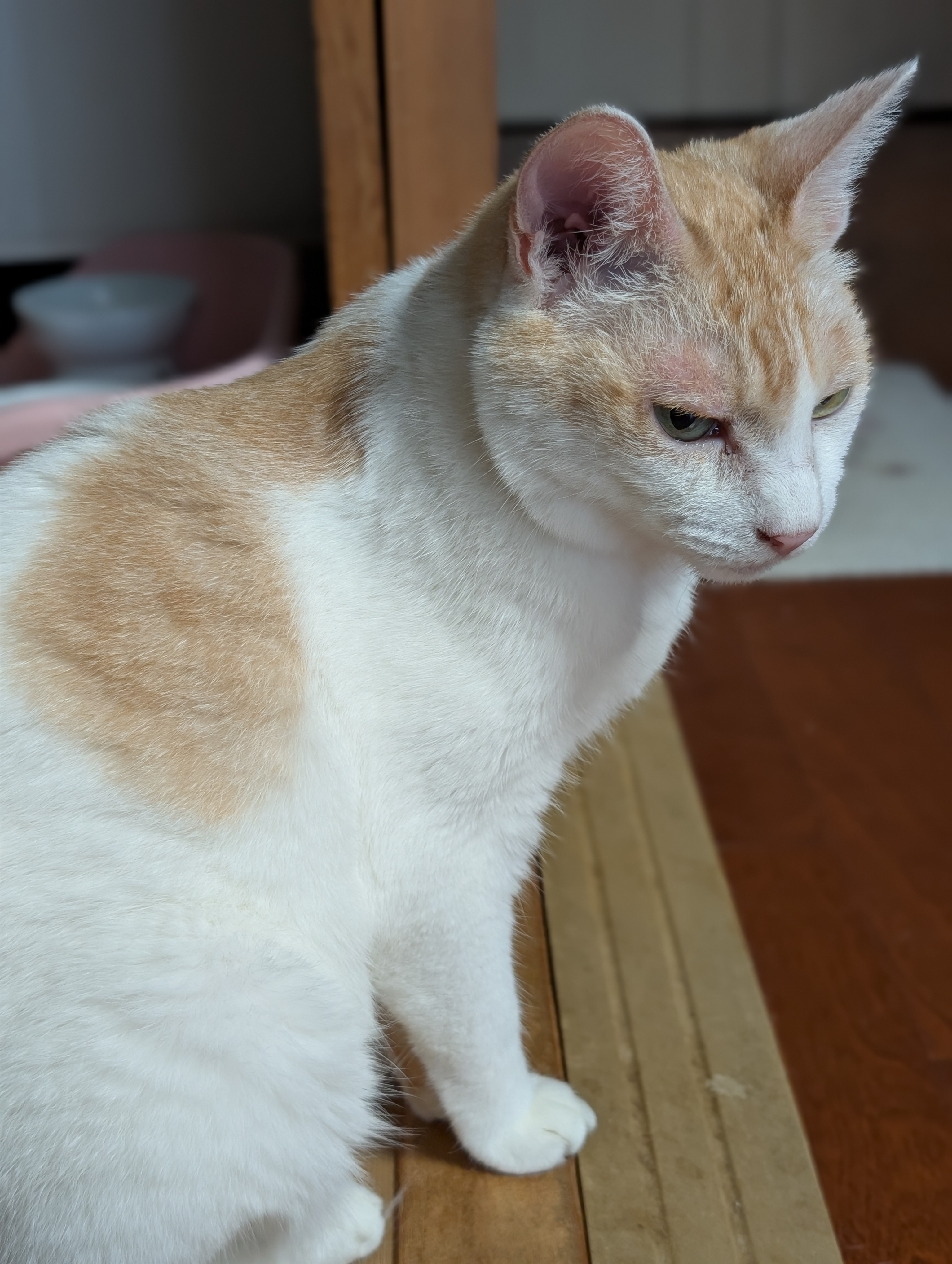 おもちゃ付き爪研ぎの上でくつろぐチャコ。このおもちゃが本当にお気に入り。