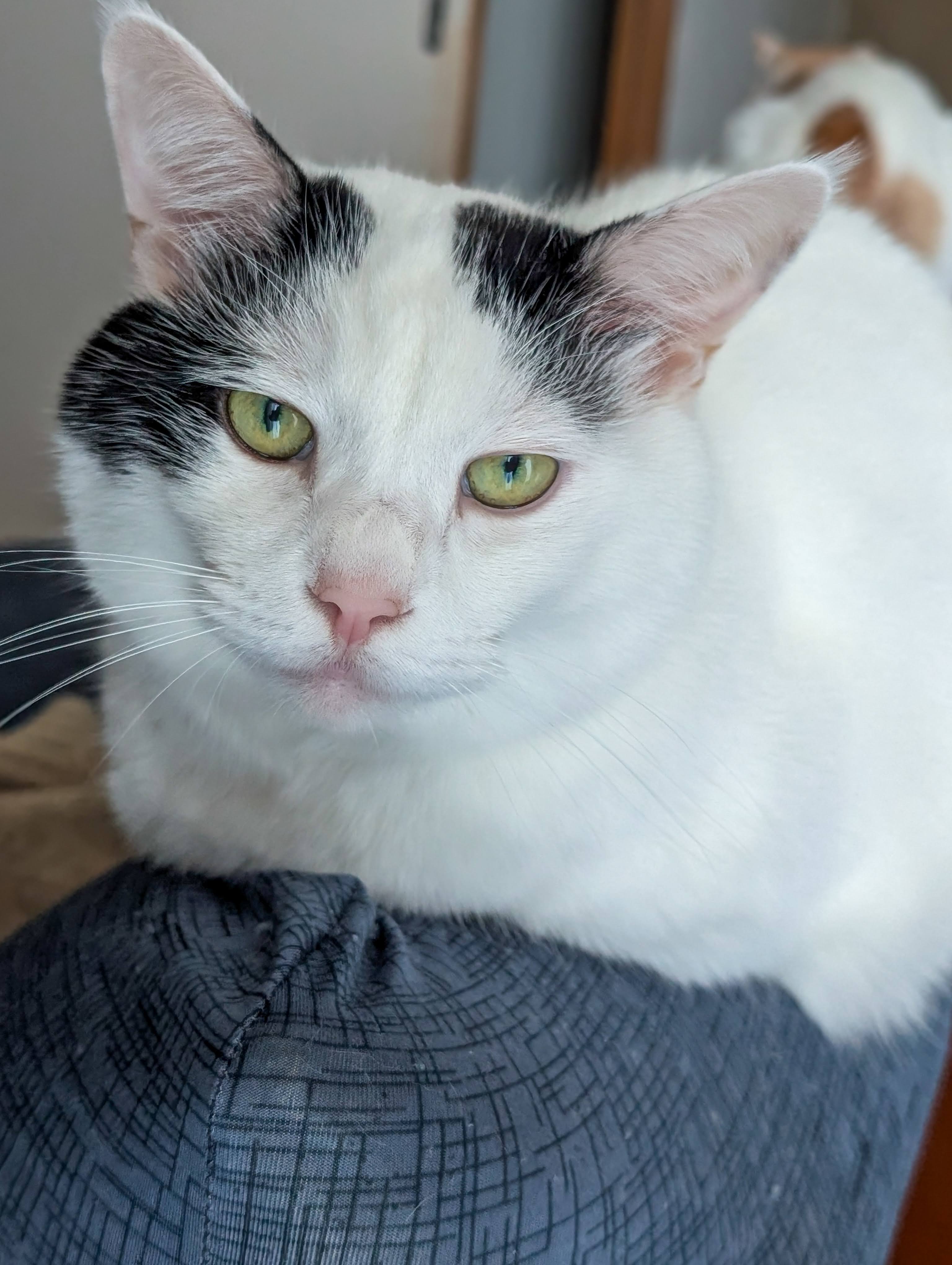 チャコは今日も鋭い目つきでこちらを見てくる。綺麗な香箱でお手々が見えません。